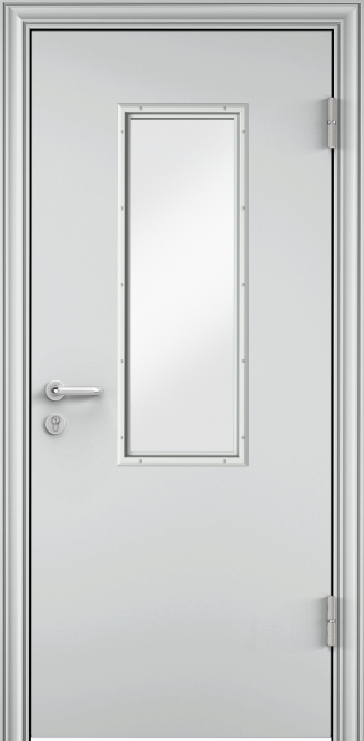Базовый вид противопожарной двери - с глухим полотном без остекления. Однако противопожарные двери со стеклом имеют серьезное преимущество - возможность осмотреть помещение, оценить степень задымленности и зону распространения огня. Для производства таких противопожарных дверей применяется многослойное огнеупорное стекло, обладающее теми же пределами огнестойкости, как и вся конструкция.