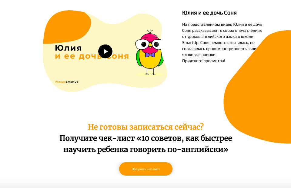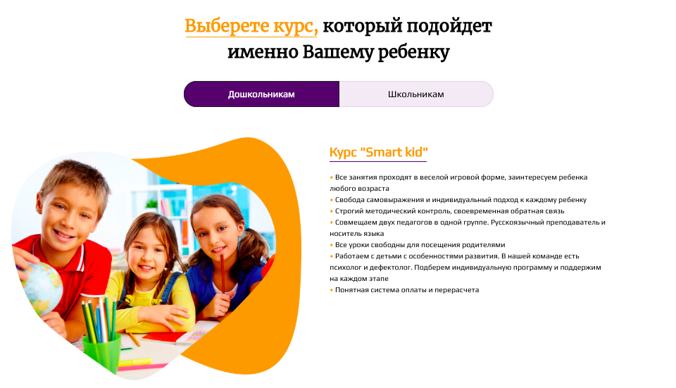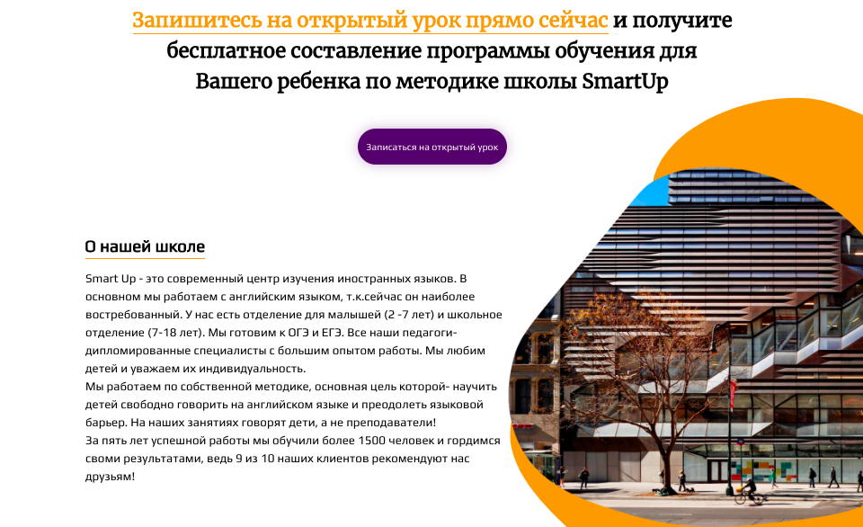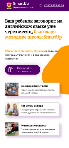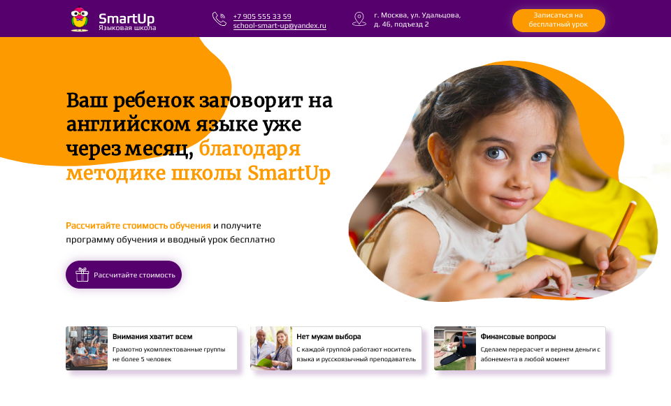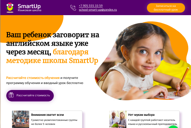 Разработать лендинг для сбора заявок на обучение детей английскому языку